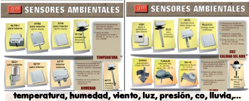 Sensores meteorológicos, dirección y velocidad de viento, lluvia, radiación solar, nieve, evaporación,….