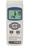 Puede medir humedad relativa, temperatura ambiente, punto de rocío y de bulbo húmedo, también tiene la función de termómetro de termopares para tipo K y J.